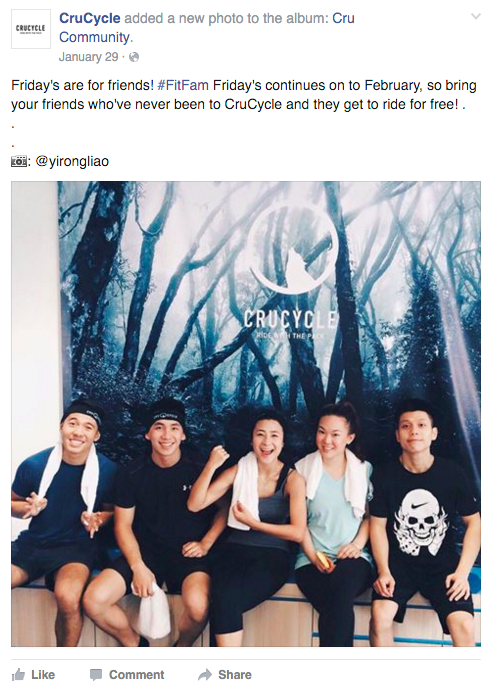 CruCycle is a locally-owned boutique indoor cycling (spinning) gym located in a nondescript shophouse on Duxton Road. As it turns out, CruCycle’s own use of social media and its target audience’s (fitness enthusiasts) social media usage patterns are the levers effecting powerful word-of-mouth (WOM), making spinning one of the top exercise trends in Singapore in 2015. Core customer value-wise, spinning is perfect for office cubicle rats who lack time, dislike the pain of physical exertion, but desperately want the toned bodies they see on Instagram.